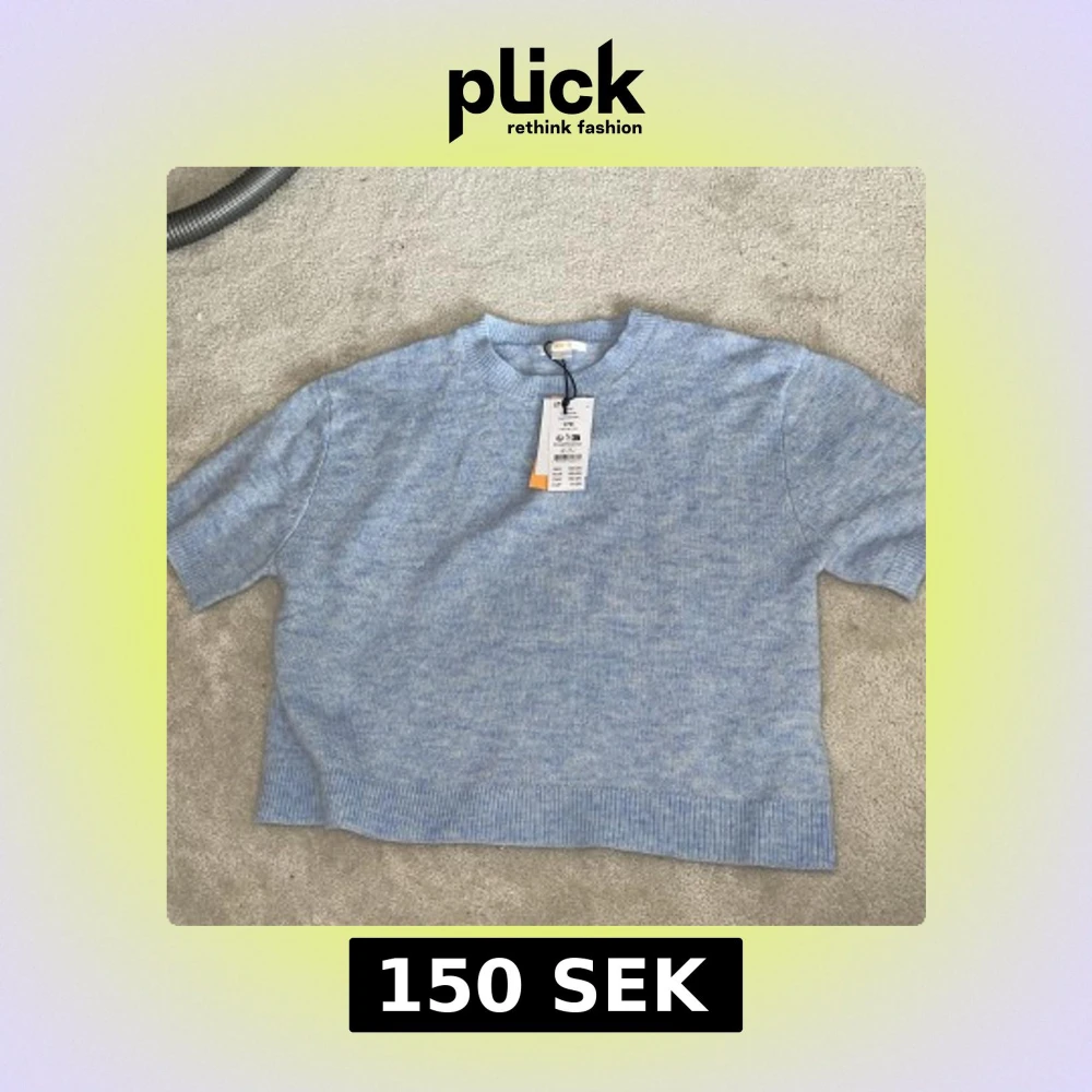 Supersöt ljusblå stickad tröja från Gina Tricot med kort ärm och ribbade detaljer vid hals, ärmslut och nederkant. Perfekt för dig som gillar en chill och enkel stil. Mjuk och skön, passar till både jeans och kjol. Tröjan är ganska kort för storleken så ni vet!