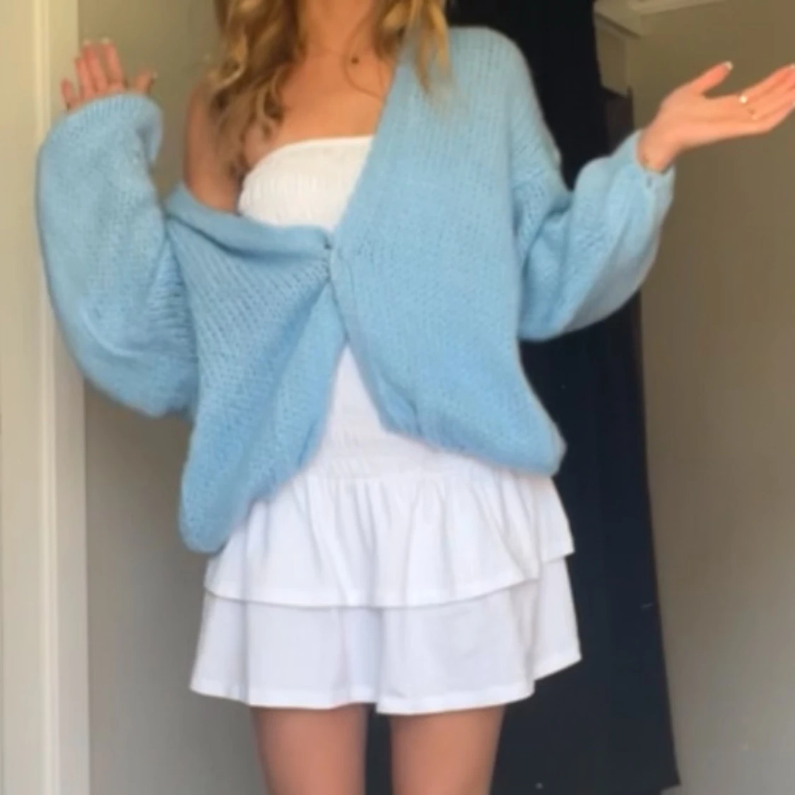 Supersöt blå kofta från Missäy!! Den är i one size och jag har vanligtvis xs-s