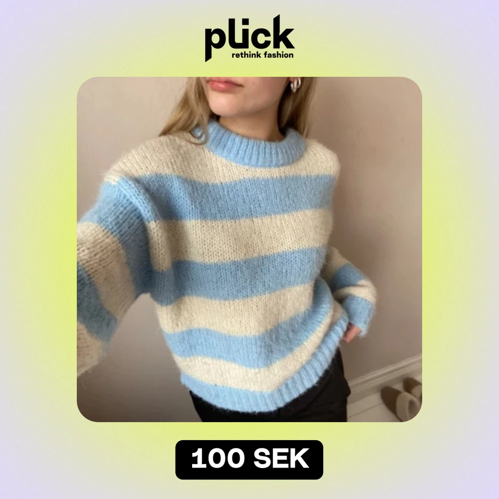 Blå och vit randig stickad tröja