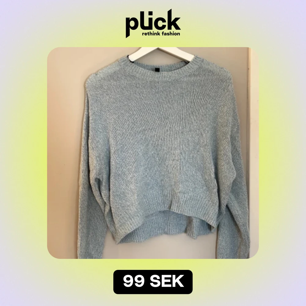 Säljer en fin ljusblå stickad tröja från HM då den inte passar längre, den är i bra skick💞