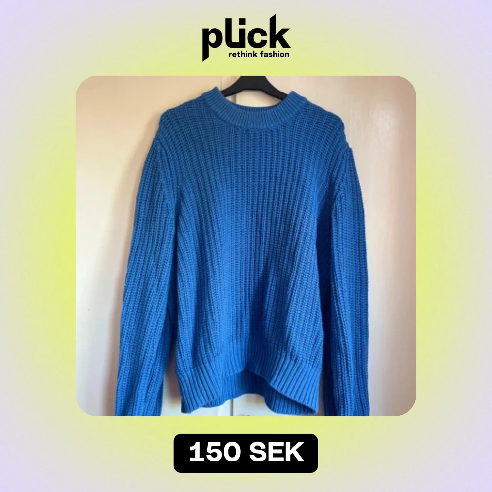 Säljer en superfin blå stickad tröja från Lindex. Den är perfekt för kyliga dagar med sin mysiga och varma känsla. Tröjan har en normal passform och långa ärmar, vilket gör den idealisk för både höst och vinter. Den har tre små fläckar (bild 2)