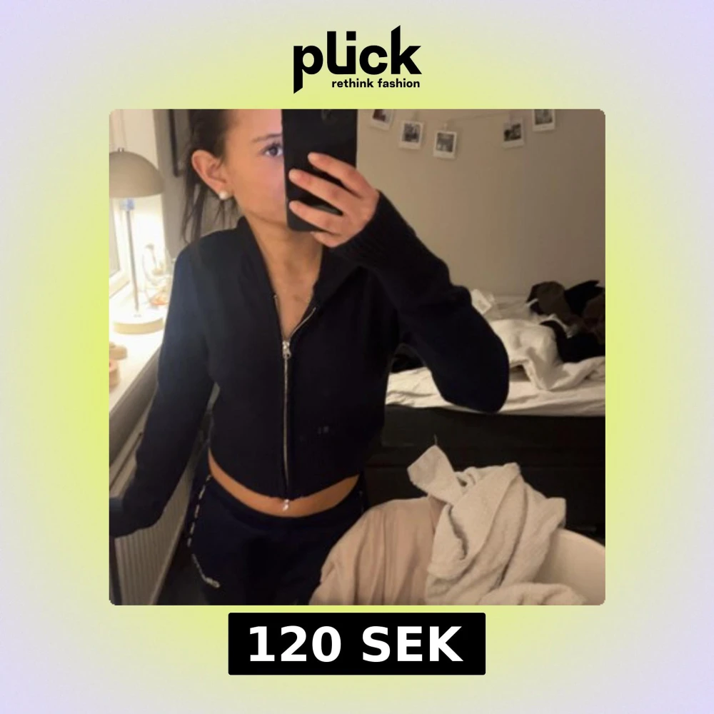 Säljer en mörkblå zip hoodie som är helt ny aldrig använd säljer så den inte kom till användning storlek 152 från Gina Young