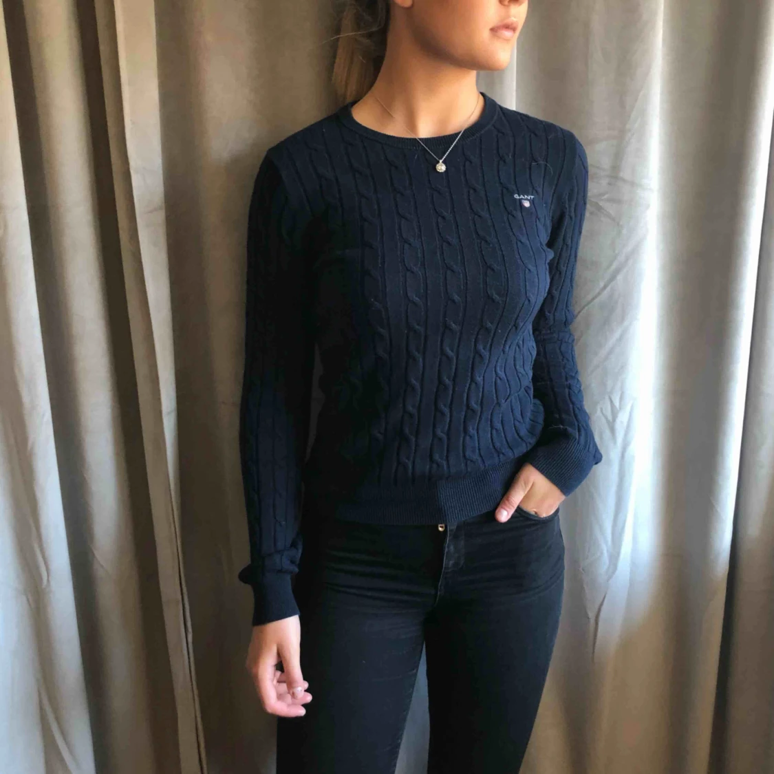 Marinblå stickad tröja från gant. Köparen står för frakten