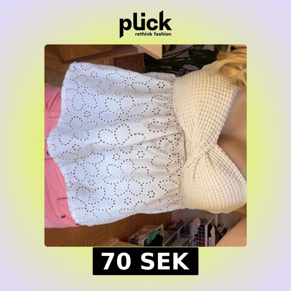 Superfin vit tubtopp med broderade blommor och volang nedtill. Toppen har en stickad bandeau överdel som sitter snyggt och bekvämt. Perfekt för sommarens alla häng och ger en söt och fräsch vibe. aldrig andvänt.