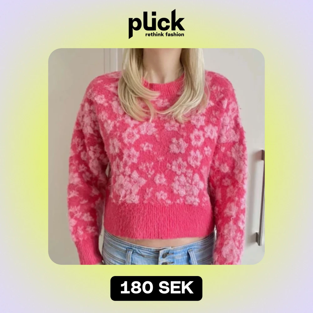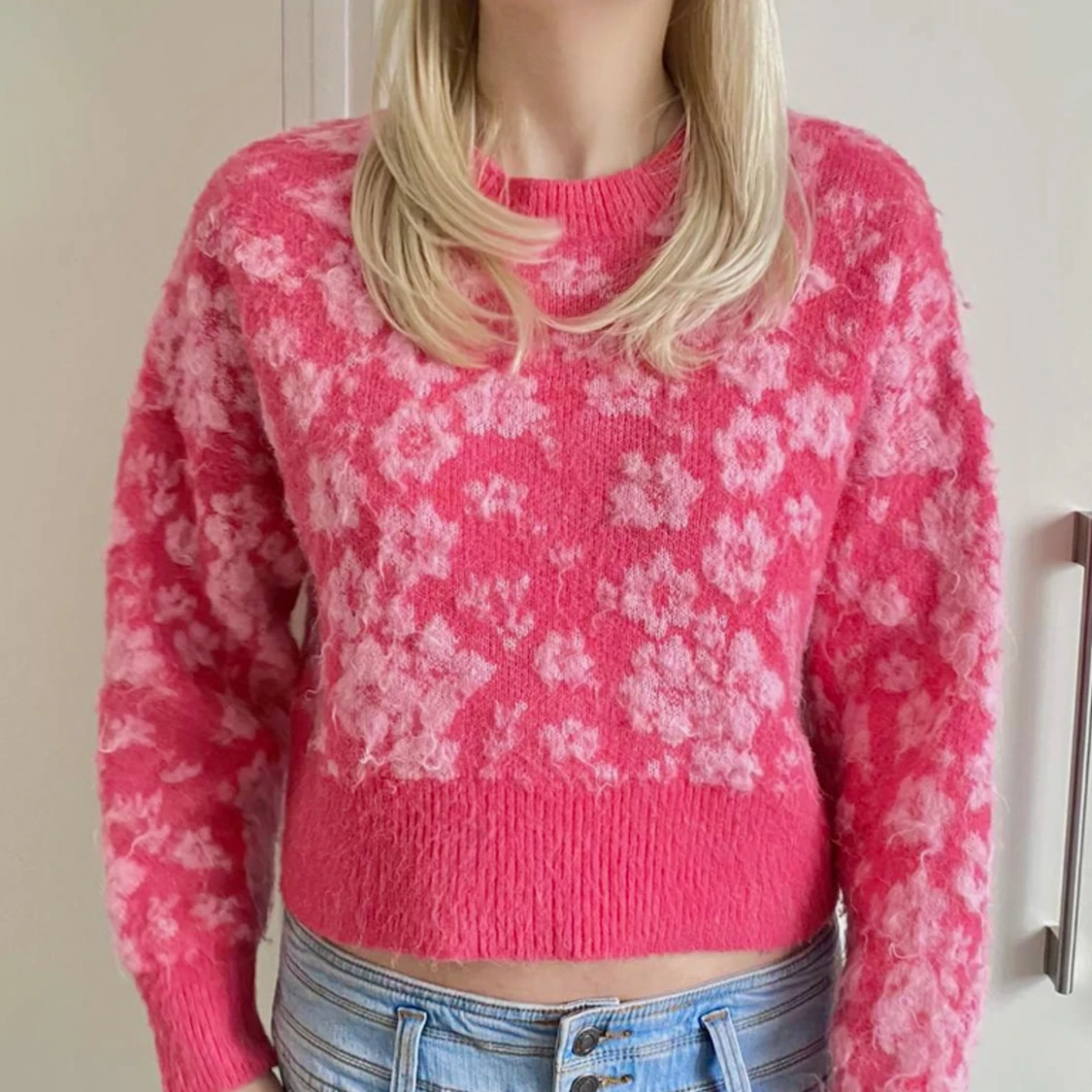 Stickad tröja med blommönster🩷🤍Storlek: S. Köp direkt via ”köp nu” knappen<3