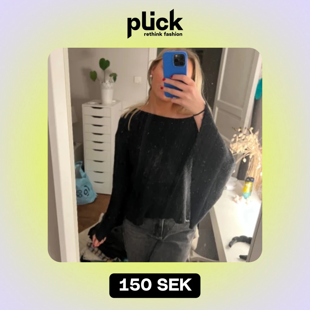 Svart stickad tröja med båthals