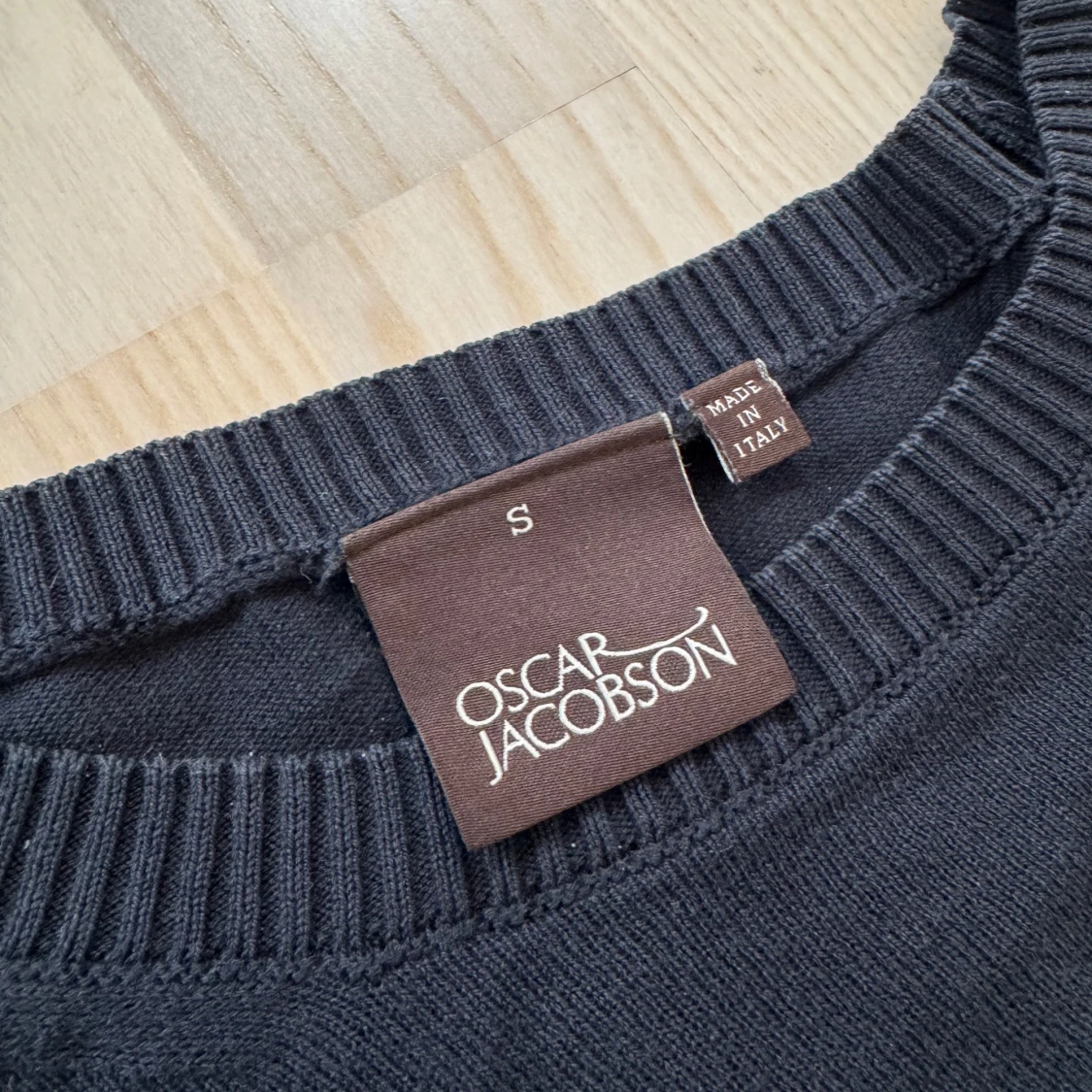 Säljer en Oscar Jacobson | Roundneck, Valter | i strl S. Tröjan är i siden och tillverkad i Italien, därmed toppkvalitet. Skicket är 9,5/10, endast använd några fåtal gånger. Nypris ligger på 1700kr. Pris är diskuterbart vid snabb affär!
