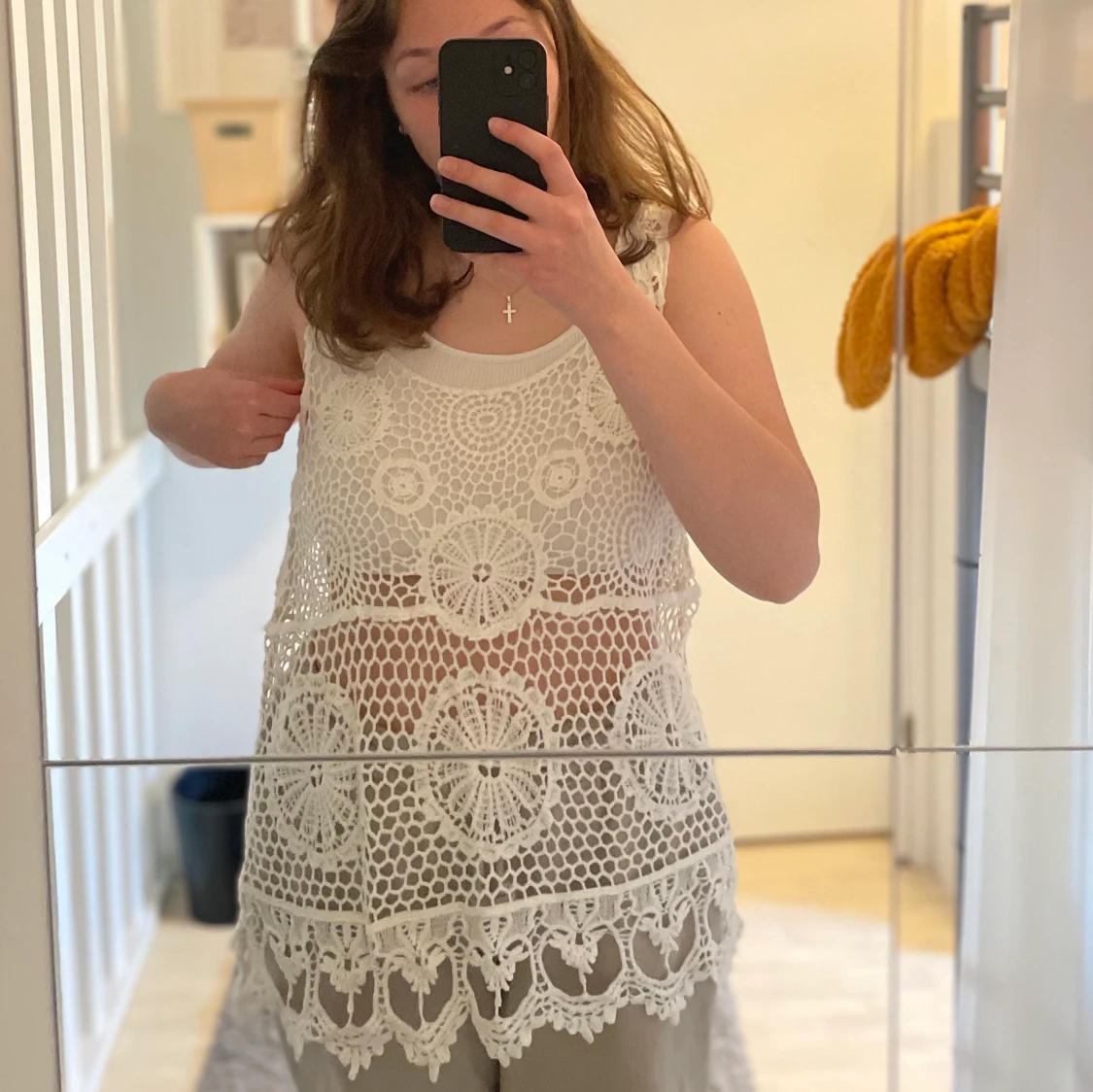 Såå fint virkat linne som jag tyvärr inte är bekväm i.. passar större och mindre beroende på önskad passform 🤗