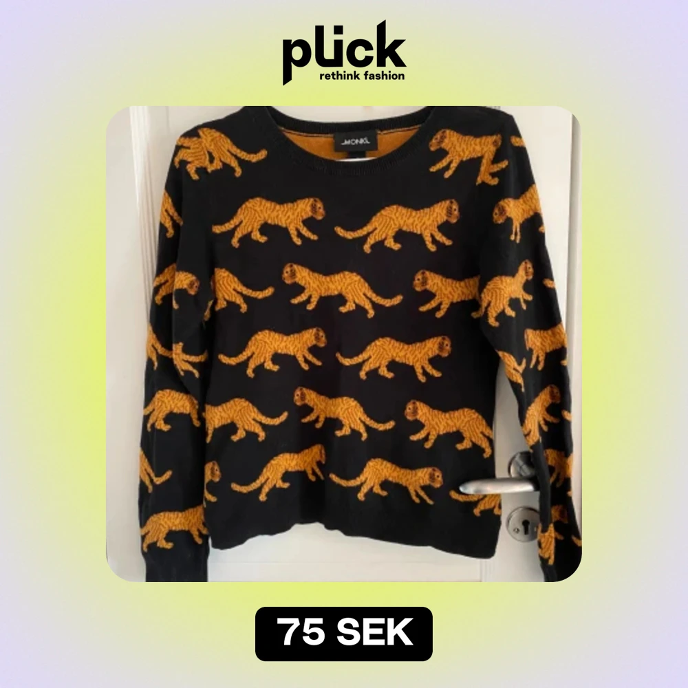 En stickad tröja med tigrar på. Från monki och är i bra skick 💗🐅