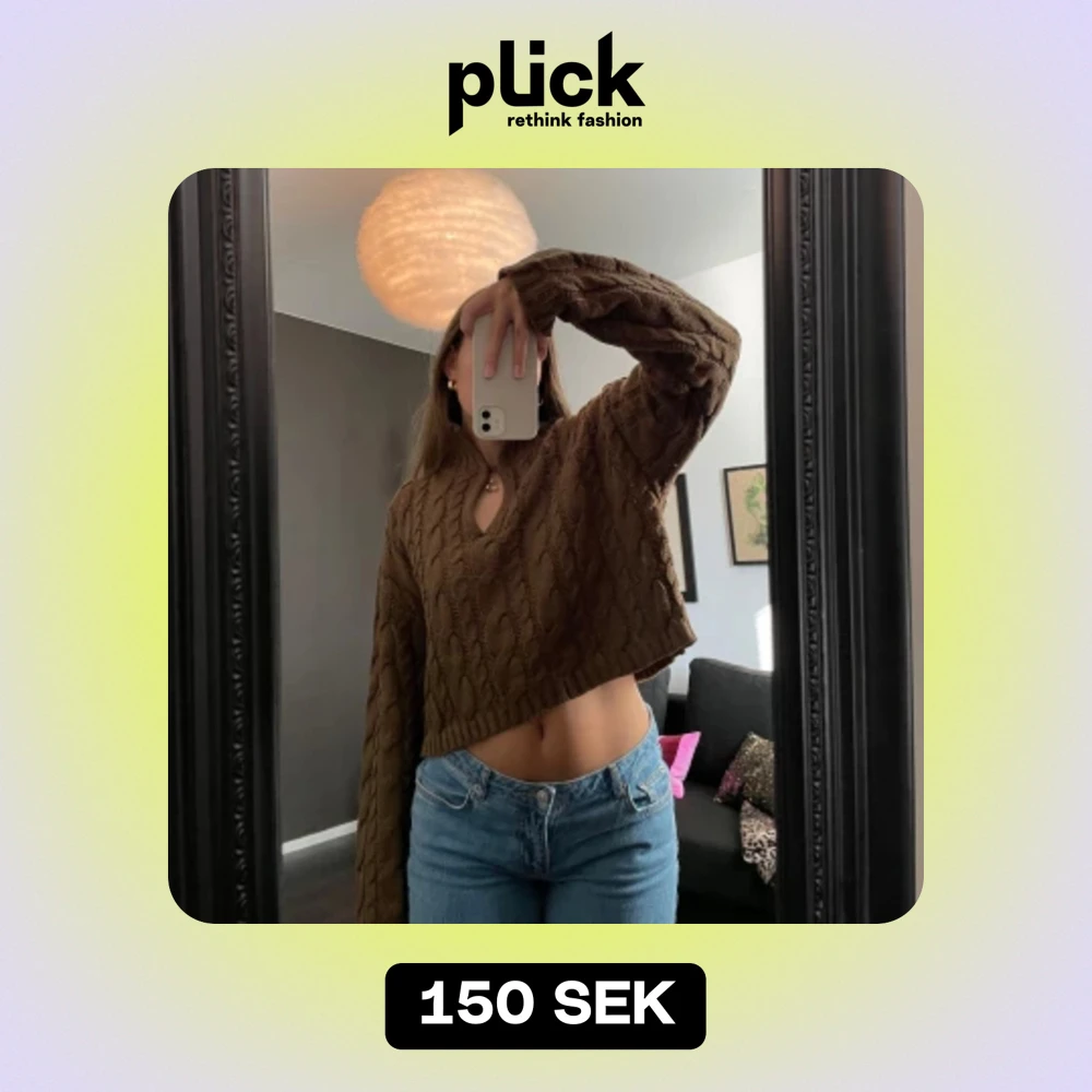 Brun kabelstickad tröja från NA-KD, så fin till hösten. Går att välja om man vill ha kragen knäppt eller öppen. Oanvänd med prislapp kvar.