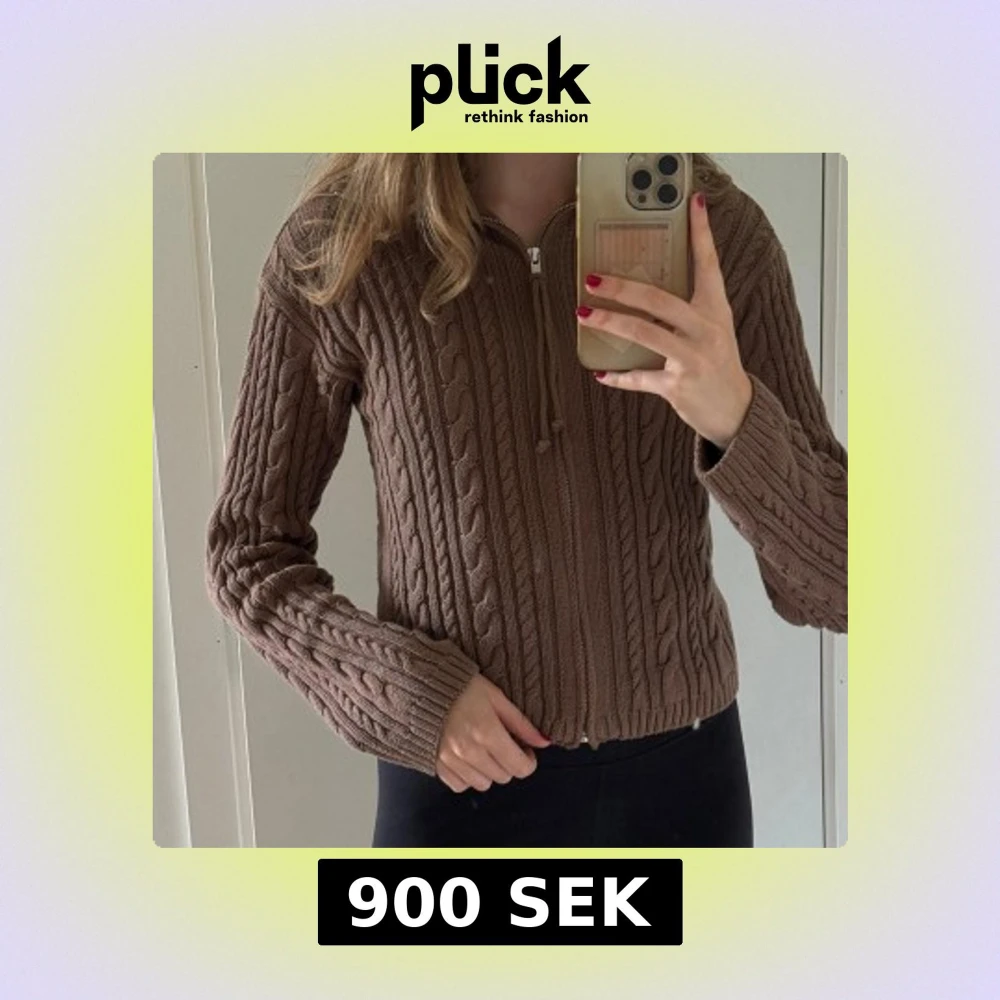 Säljer en brun stickad kofta från Djerf Avenue med kabelstickat mönster och dragkedja framtill. Koftan har hög krage och långa ärmar. Supermysig och snygg till både jeans och kjol. Köpt för 1500.