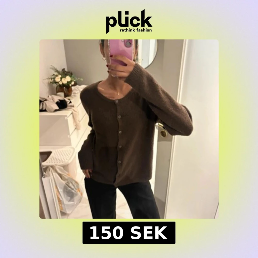 Mysig brun stickad kofta med rund halsringning och knäppning framtill. Koftan har långa ärmar och en relaxed passform, perfekt att slänga på sig när det är kyligt. Enkel och stilren design som funkar till många outfits.