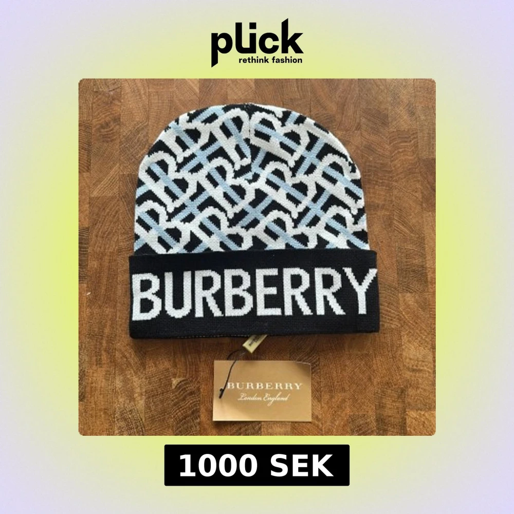 Snygg mössa från Burberry med monogrammönster i svart, vitt och ljusblått. Stor logga framtill på uppvikt kant. Tillverkad i stickad bomull för en mjuk och bekväm känsla. Perfekt accessoar för att lyfta din streetstyle.