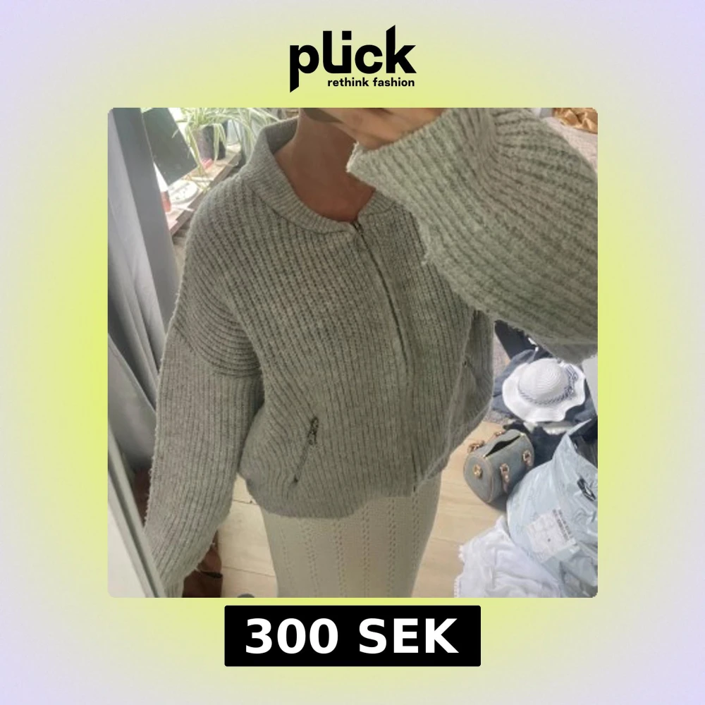 Mysig ljusgrå stickad cardigan tröja med grov ribbad struktur och dragkedja framtill. Jackan har två fickor med dragkedjor och en rund halsringning. Perfekt för lager-på-lager och chill vibes.