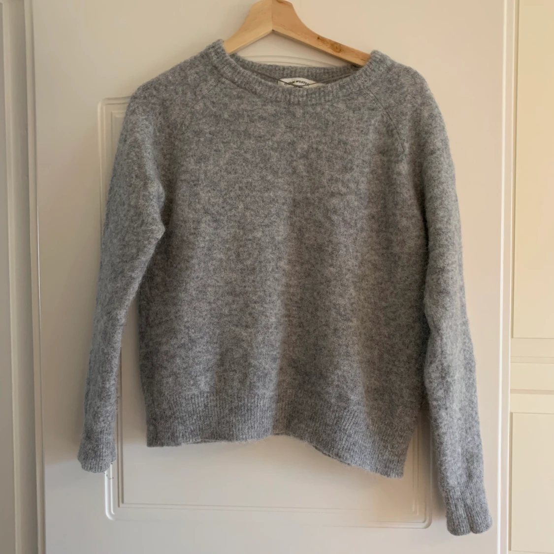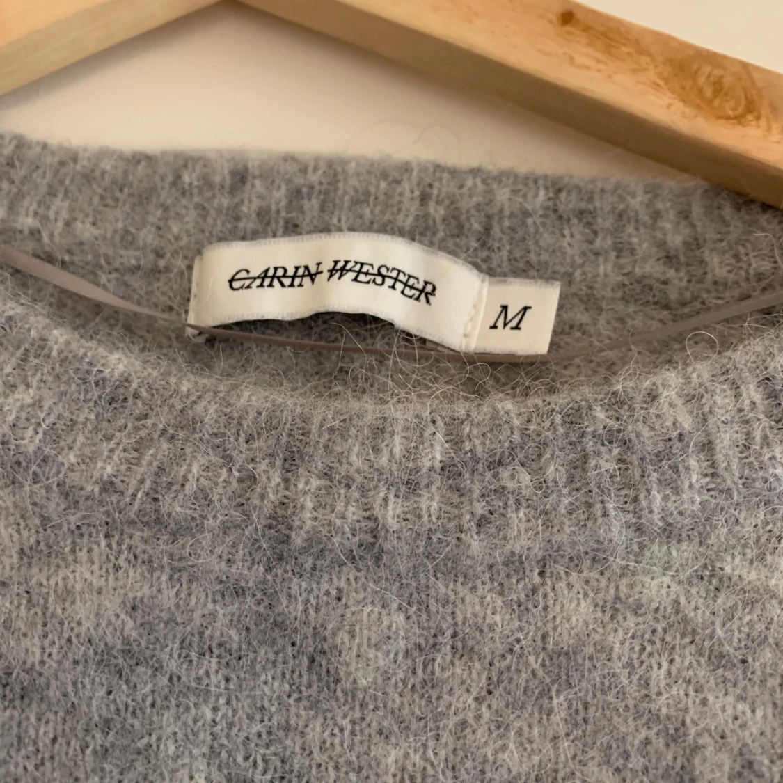 Grå stickad tröja i alpacka, ull mm från Carin Wester. Frakt tillkommer.