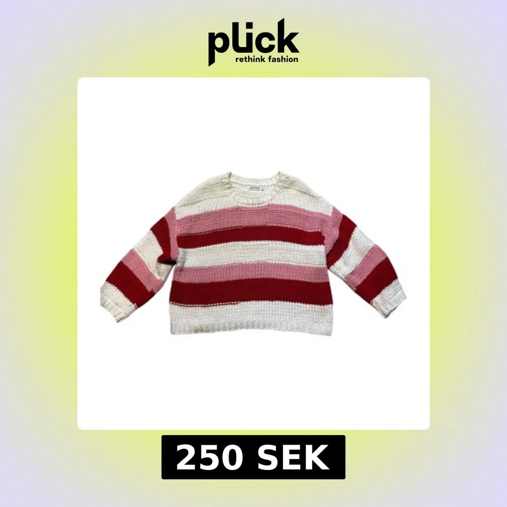 Säljer en mysig stickad tröja från Carin Wester i storlek M. Tröjan har breda ränder i beige, rosa och rött. Perfekt för kyliga dagar med sin avslappnade passform och långa ärmar. Ett måste för garderoben! 💖