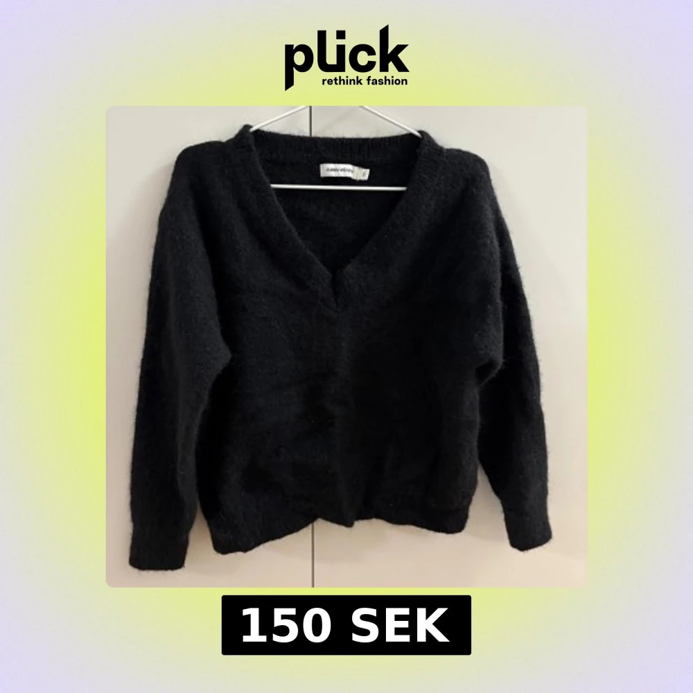 Mysig svart stickad tröja från CW med v-ringad hals och lång ärm. Perfekt för lager-på-lager och chill dagar. Enkel att matcha med jeans eller kjol för en clean look.