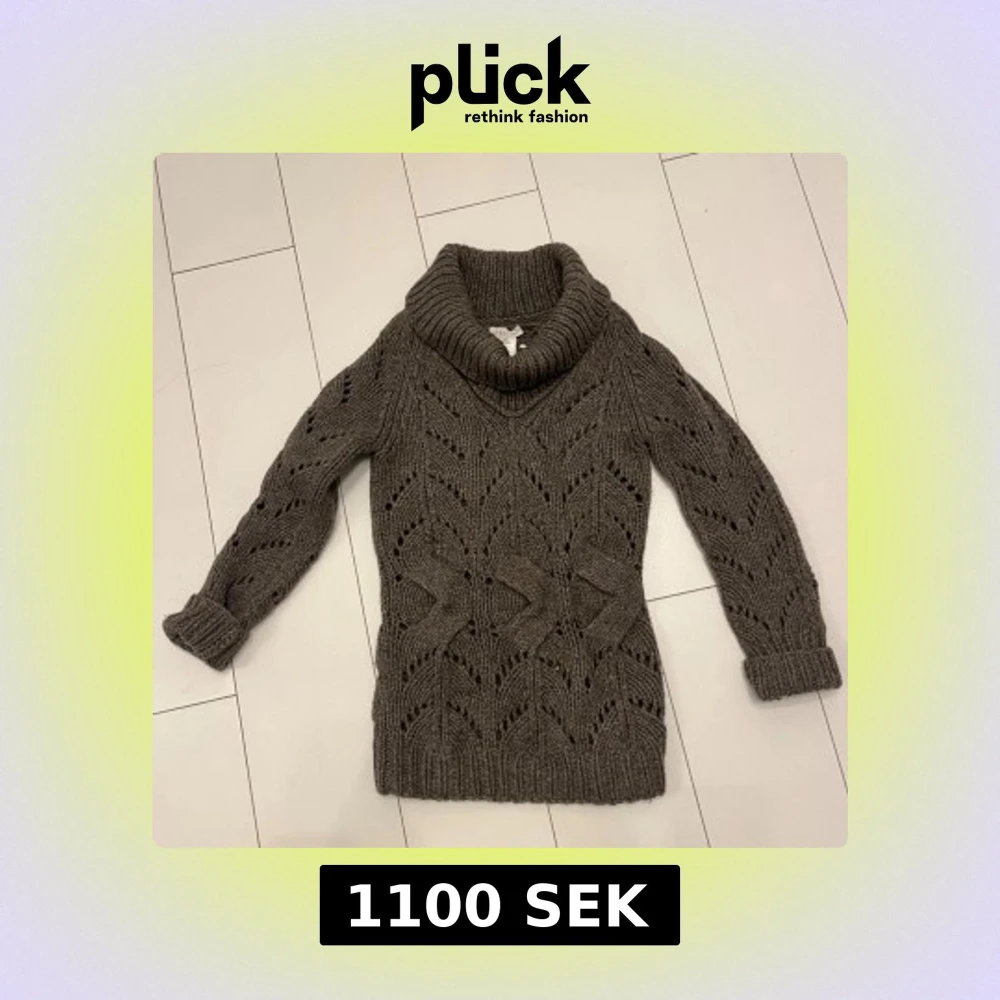 Passar storlek Small och en liten medium! Säljer en chunky grå polotröja från Celine i ull och yak. Tröjan har ett snyggt stickat mönster, bred polokrage och långa ärmar med muddar. Perfekt för kalla dagar när du vill vara både varm och stilren.