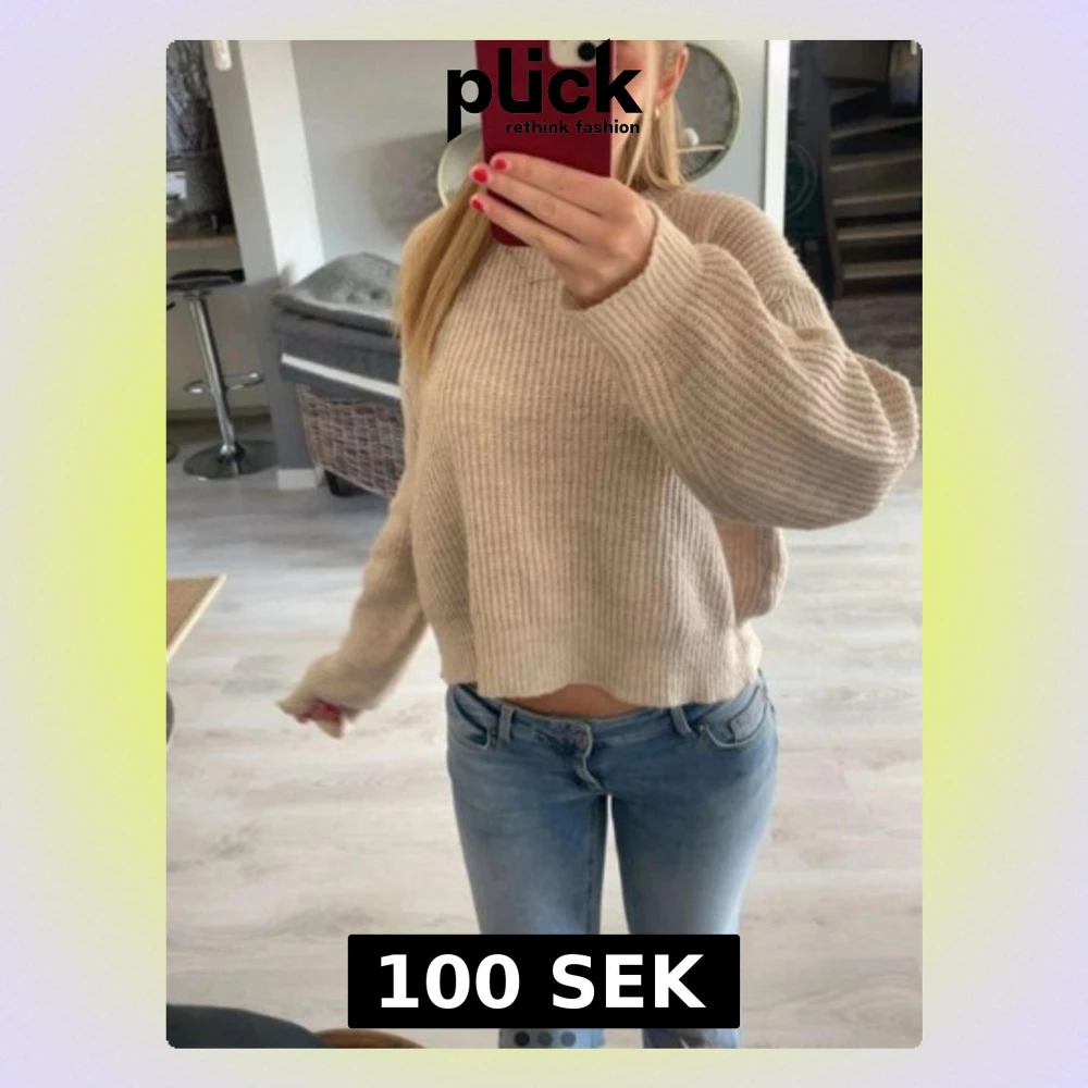 Säljer en beige stickad tröja från Chiquelle med ribbad/ flätad struktur. Lite loose passform.