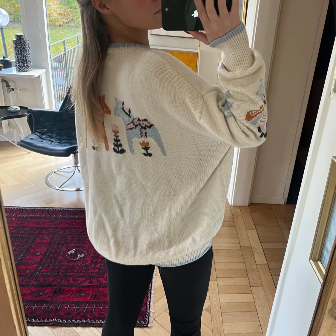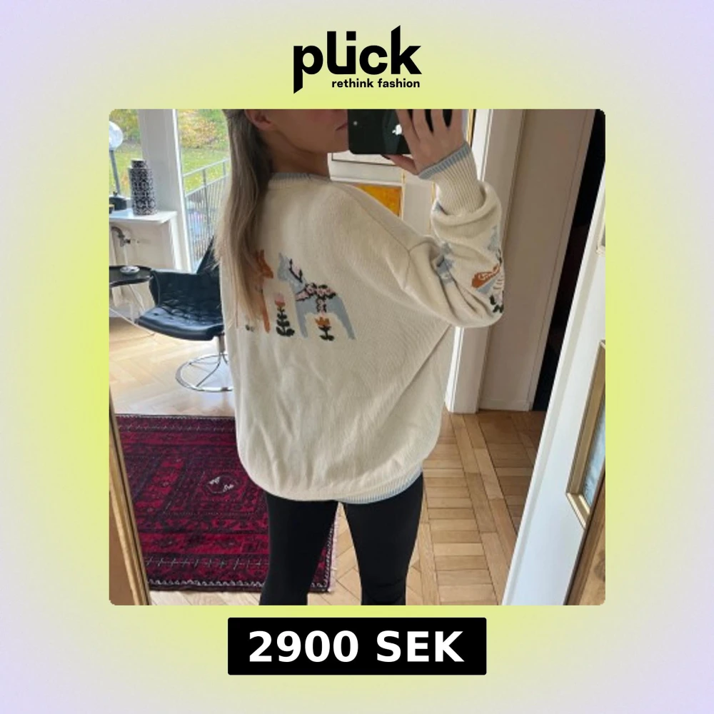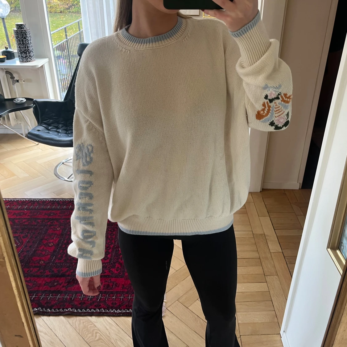 Så fin tröja från Nathalie Schuterman (Cloeys). Fint skick förutom en liten fläck på baksidan, se bild 3. Storlek XL/ XXL, vilket motsvarar den vanliga onesize storleken på dem andra tröjorna. Nypris ca 5000kr