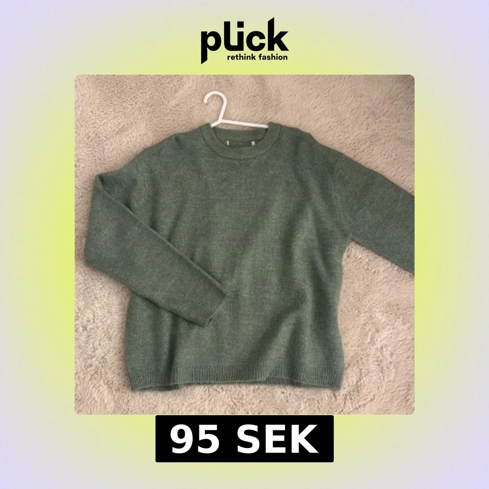 Mysig grön stickad tröja med rundad hals och ribbade muddar vid ärmslut och nederkant. Köpt från LAGER 157 men har dock klippt av lappen. Extremt skönt material, och den är använt endast 1 gång utan några som helst skavanker!!!