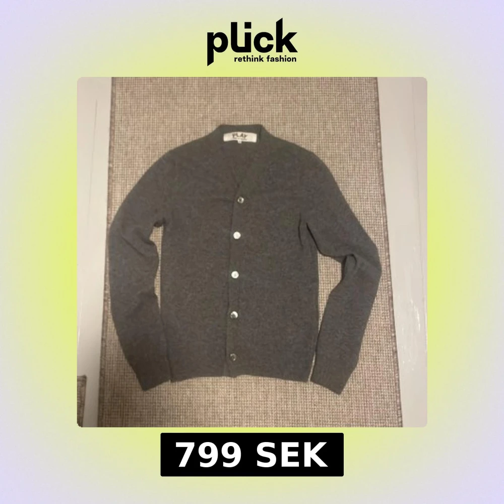 Grå stickad cardigan från Comme des garçons play i 100% wool, made in Japan. Rikitgt bra skick strl S.