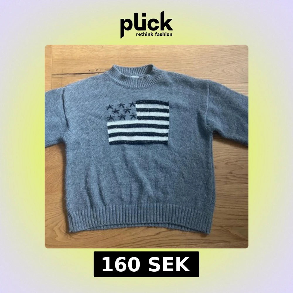 Grå stickad tröja från Meet Me There med amerikanska flaggan på bröstet. Tröjan har lång ärm och en klassisk, lite loose passform. Perfekt för dig som gillar coola detaljer. Nästintill oanvänd, inga defekter!🩶🩶🩶🖤🖤