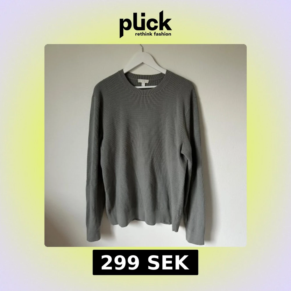 Snygg grå stickad tröja från COS i storlek M. Tröjan har rund hals, långärmad design och är tillverkad i 100% bomull. Perfekt för dig som gillar enkel och stilren look med lite struktur i materialet. 4Ä1