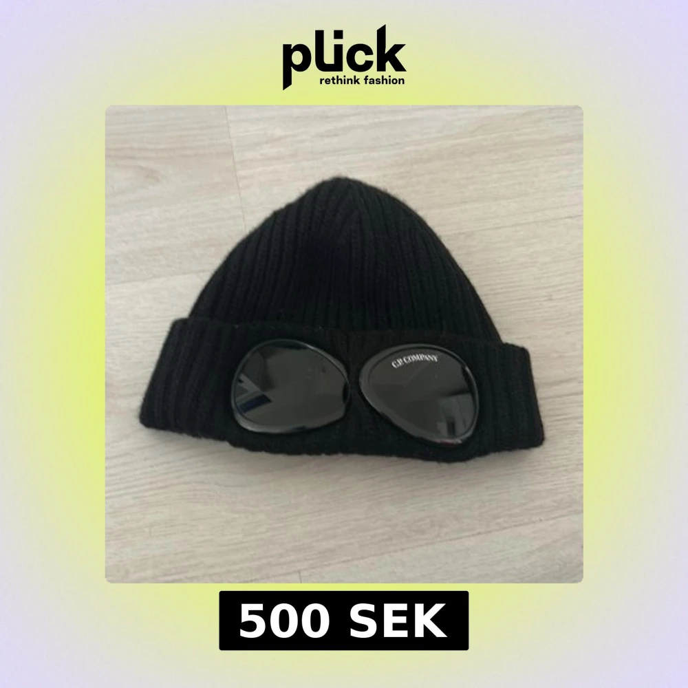 Säljer en svart ribbstickad mössa från C.P. Company med de ikoniska goggle-linserna framtill. Mössan är tillverkad i mjuk ull och har en uppvikt kant där linserna sitter fast. Perfekt accessoar för dig som vill sticka ut.