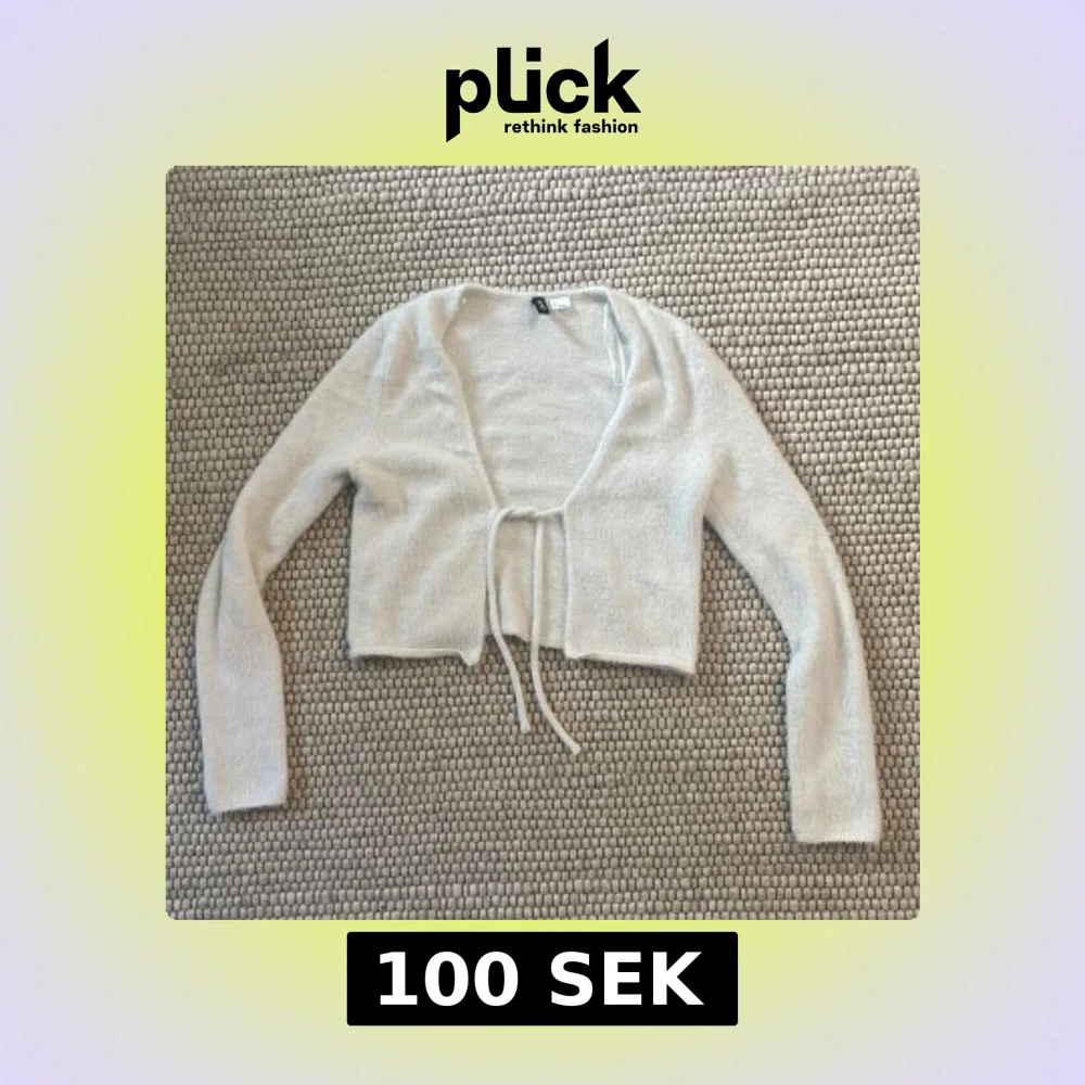Vit fluffig stickad tröja med knytning, superfin till hösten 💕