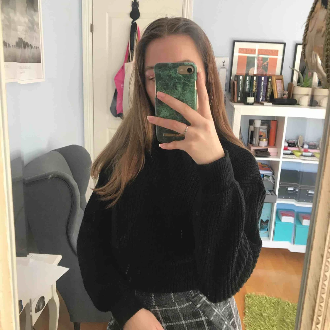 Hej! Säljer en svart stickad tröja från boohoo. Den är ganska kort och har lagom pösiga armar. Väldigt bra skick. Frakt tillkommer