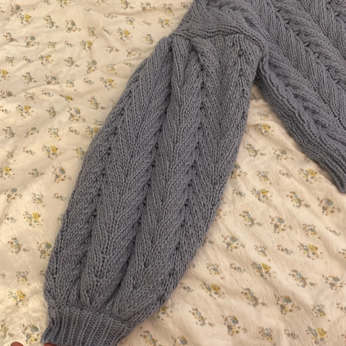 Storlek M. Croppad längd i magen. Breda/puffiga armar