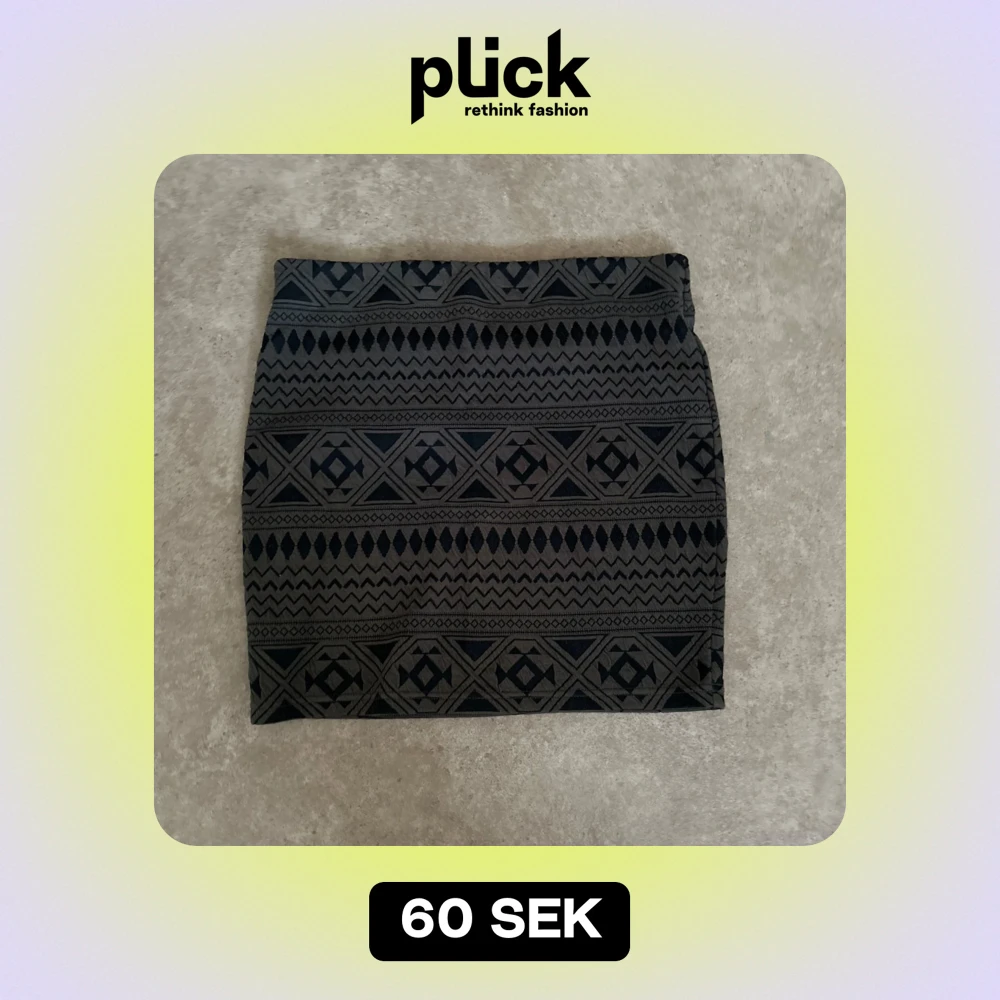 Säljer en snygg svart och grå kortkjol med geometriskt mönster. Perfekt för både vardag och fest! Kjolen har en tight passform som framhäver figuren. Materialet känns mjukt och stretchigt, vilket gör den bekväm att bära hela dagen. Passar perfekt till en enkel topp eller en stickad tröja för en mer avslappnad look.