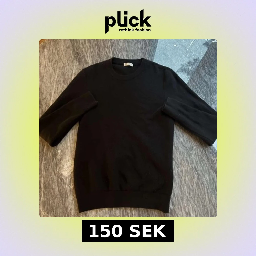 En klassisk svart stickad tröja med rund halsringning och långa ärmar. Perfekt basplagg som passar till många olika stilar. Tröjan har en diskret struktur i materialet och ribbade muddar vid ärmslut och nederkant.