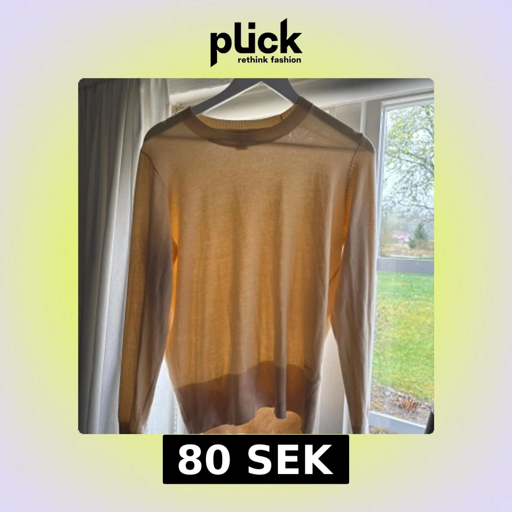 Säljer en beige/gul stickad tröja från Holly & Whyte by Lindex. Den är i storlek L men jag som med storlek S har tyckt den sitter bra, lite lös men inte överdrivet. Tröjan har långa ärmar och fina guldfärgade knappar vid ärmsluten.