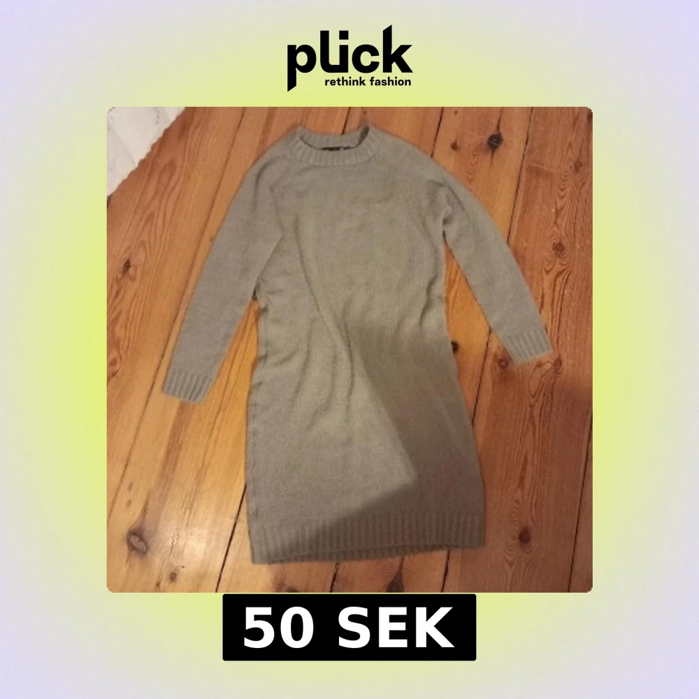 Säljer en mysig beige stickad klänning från 157. Klänningen har långa ärmar och en rund halsringning. Perfekt för kyligare dagar och kan enkelt stylas med olika accessoarer. 100cm lång.