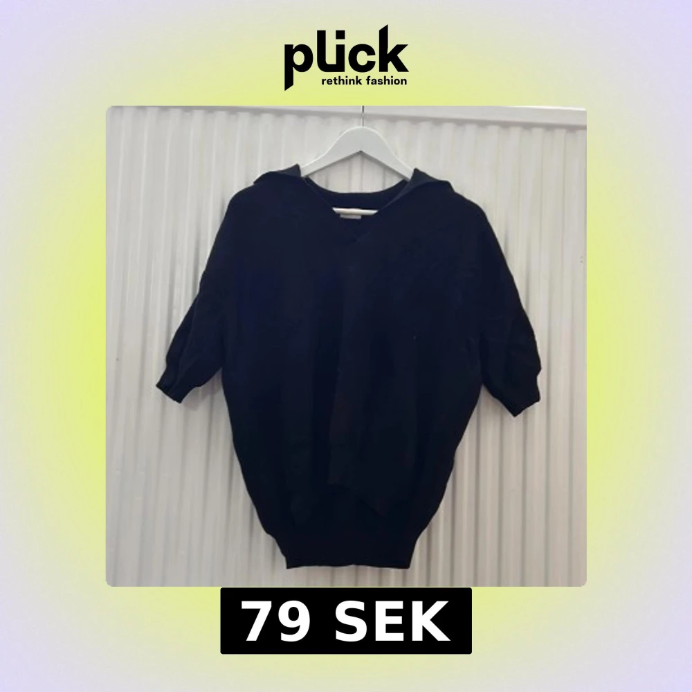 Svart stickad tröja från Stories i storlek S. Tröjan har kortare ärmar och en avslappnad passform med v-ringad hals. Perfekt för lager-på-lager och enkel att matcha med olika outfits.