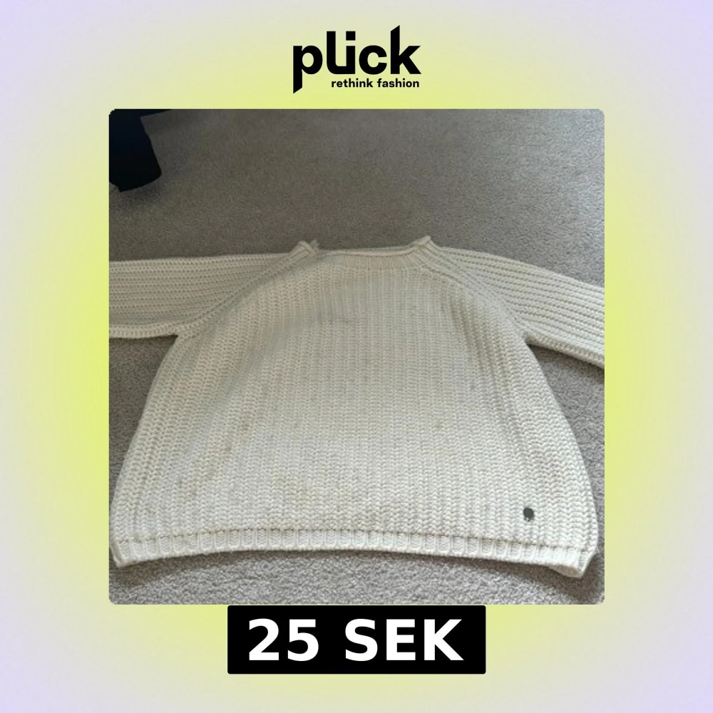 Säljer en chunky vit stickad tröja från Ajlajk i storlek S/M. Tröjan har lång ärm, rund halsringning och grovstickat mönster. Perfekt för lager-på-lager och enkel att matcha med jeans eller kjol.