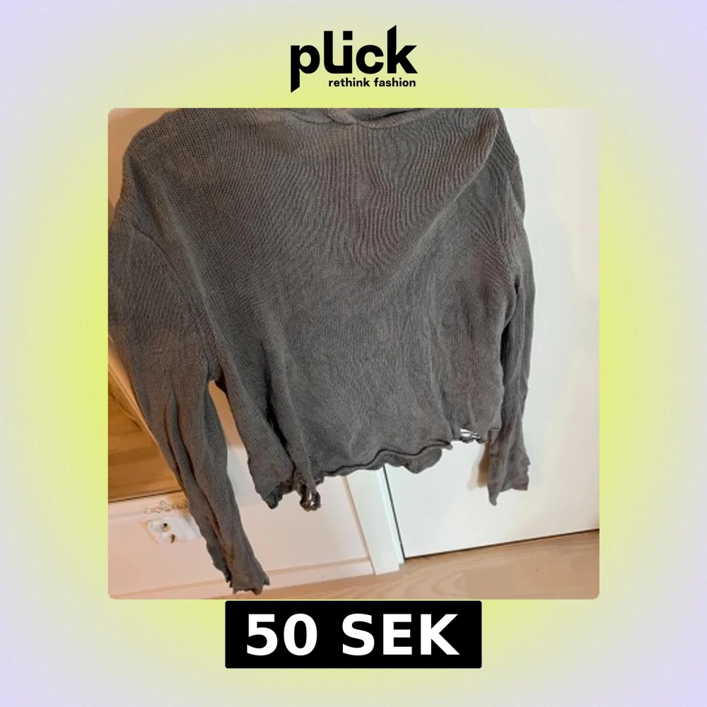 Grå stickad hoodie med lång ärm och lös passform. Tröjan har en stor huva och är tillverkad i ett mjukt stickat material. Perfekt för en avslappnad stil och enkel att matcha med jeans eller leggings.