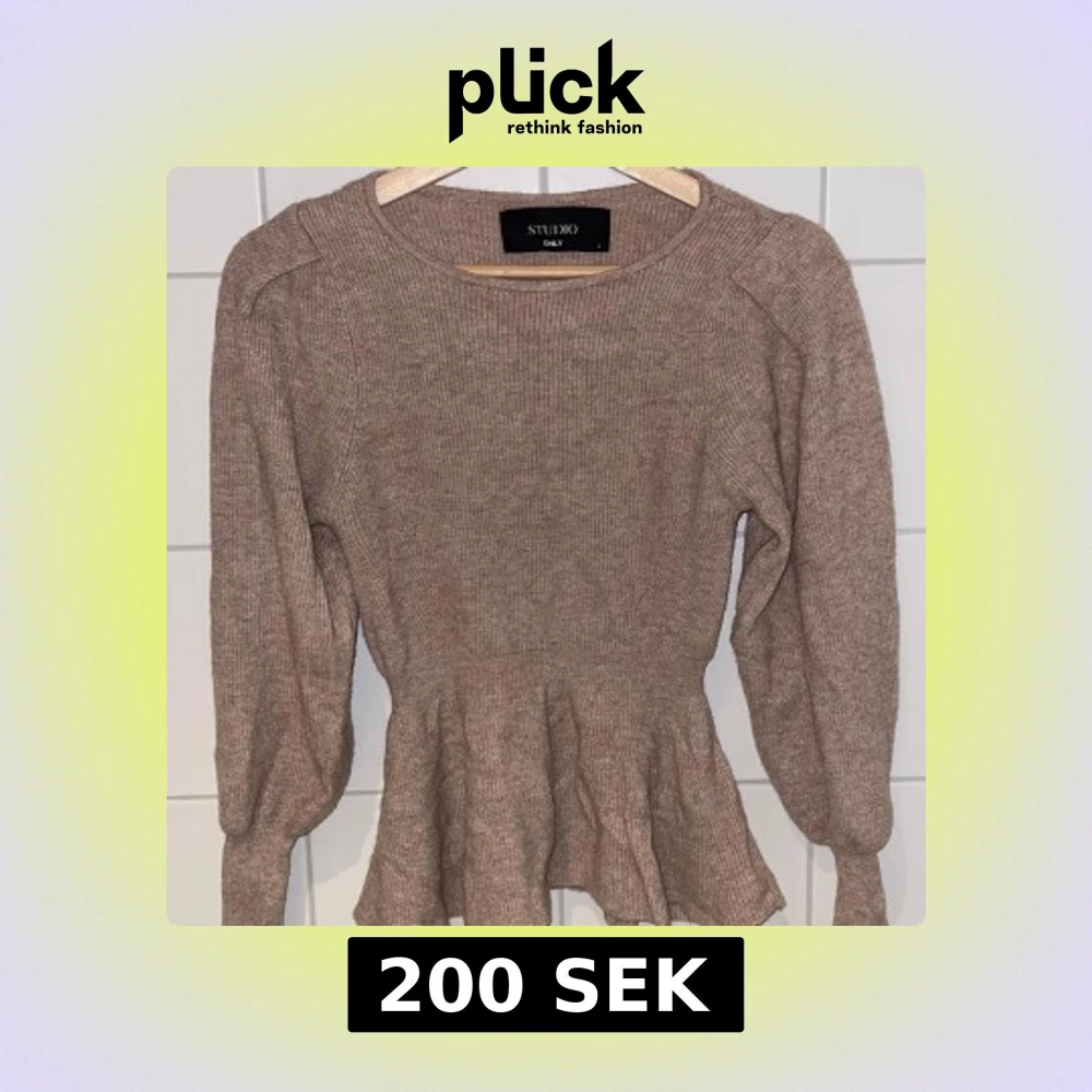 Supersöt beige stickad topp från ONLY STUDIO med volang nertill och långa ärmar. Perfekt till jeans eller kjol för en chill och snygg look. Mjuk och skön, med rund halsringning och ribbad struktur.
