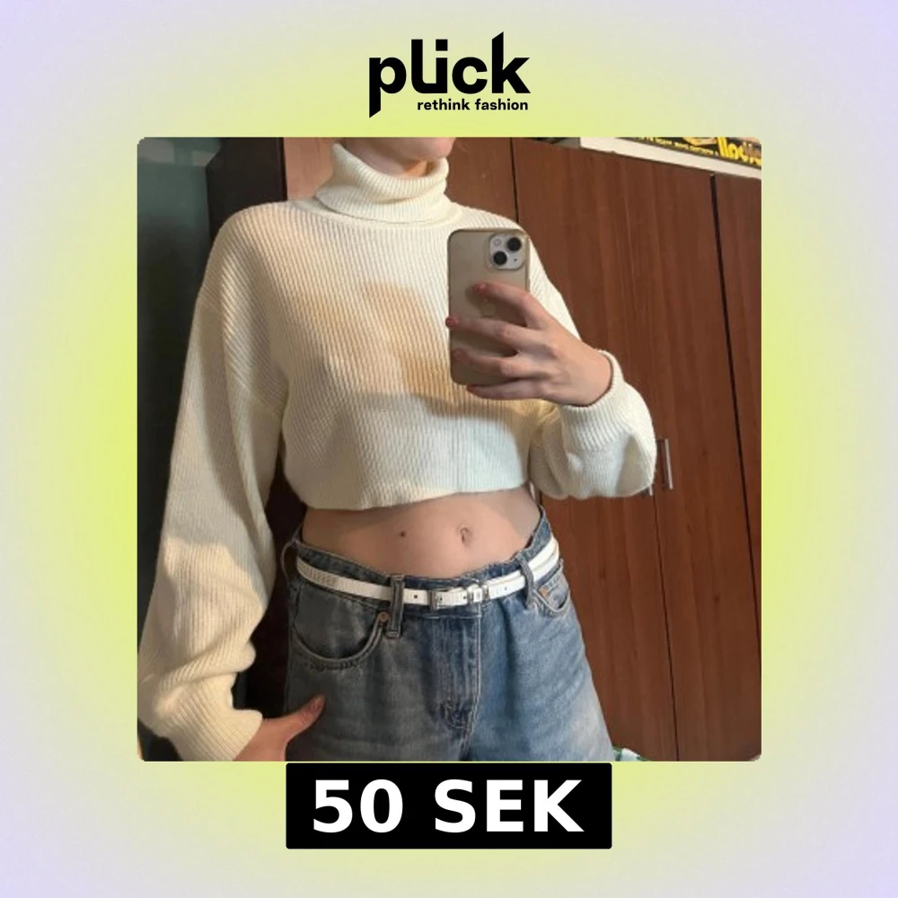 Säljer en vit croppad polotröja från Divided. Tröjan är stickad med ribbad struktur. Storlek xs🥰