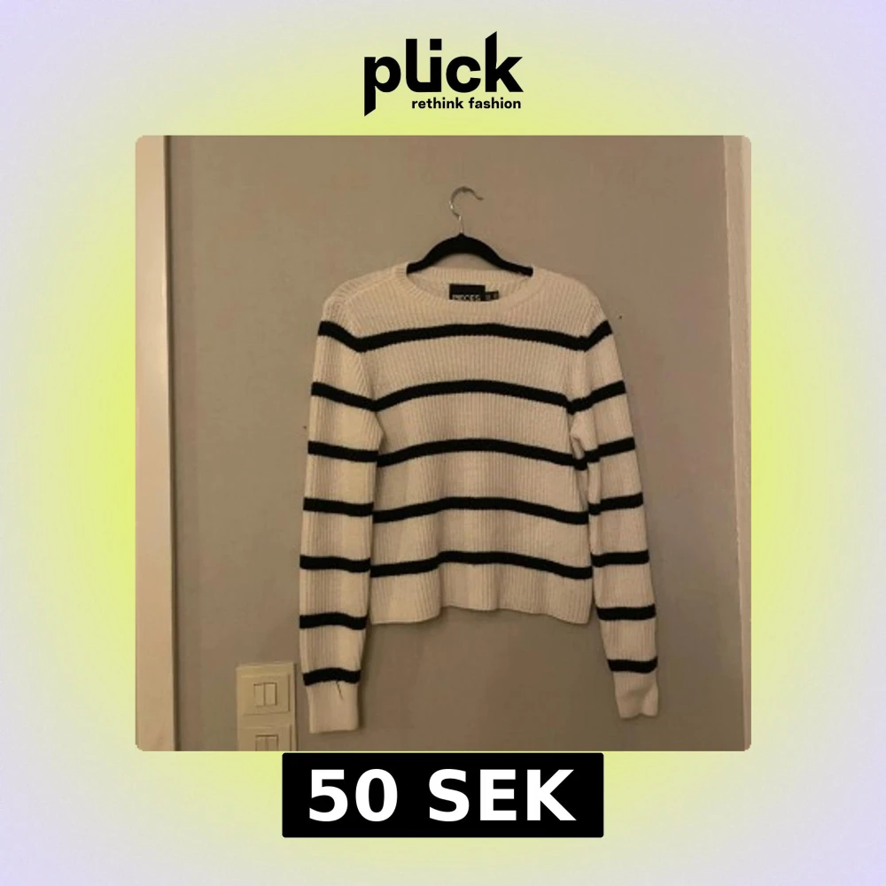 Säljer en snygg vit och svart randig tröja från Pieces.