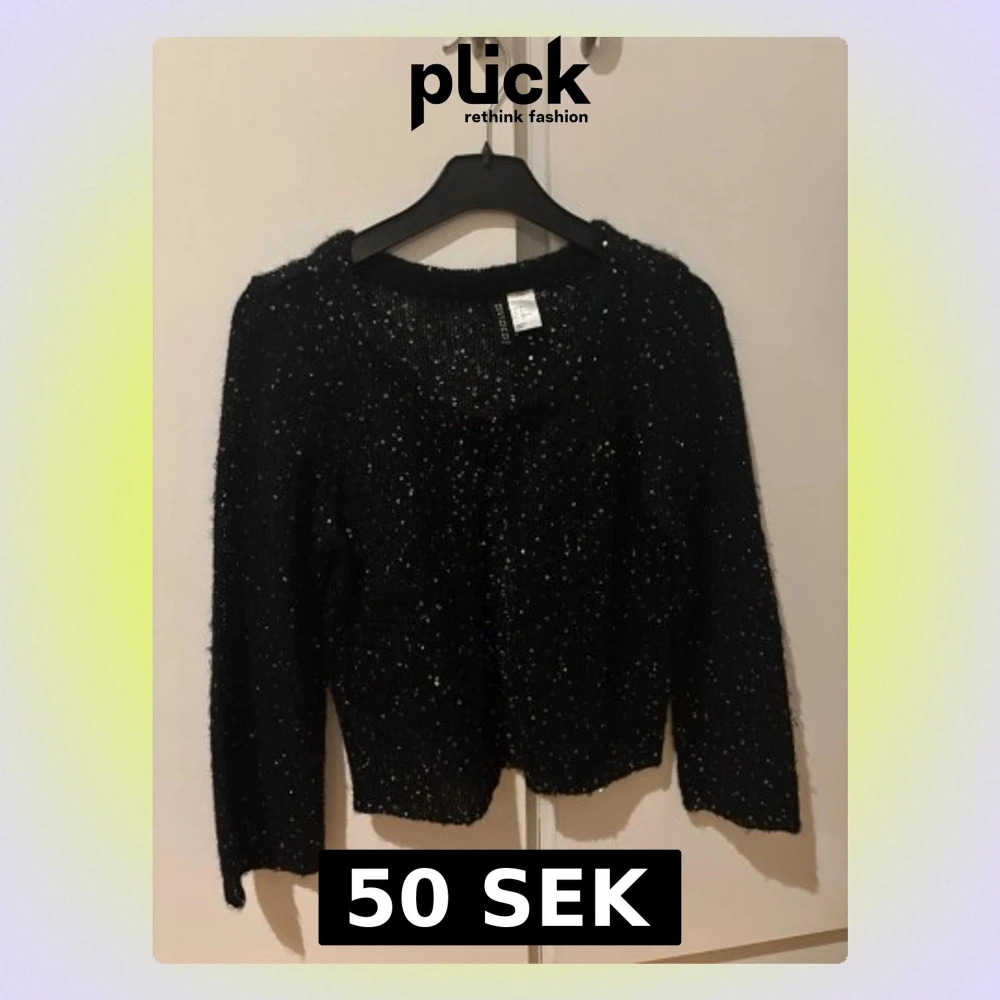 Säljer en svart kofta från Divided med glittriga paljetter över hela tröjan. Snygg till klänning, knäpps med en hake högst upp. Mycket fint skick.
