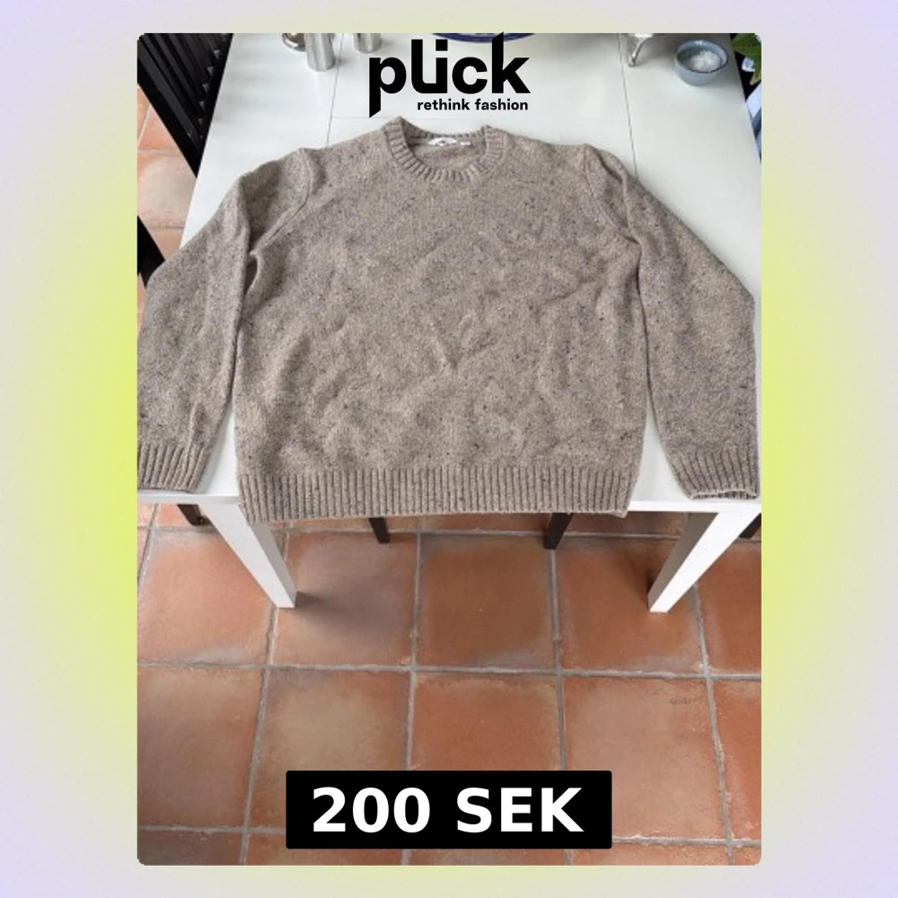 Klassisk beige stickad tröja med rund hals och ribbade muddar vid ärmslut och nederkant. Tillverkad i en mjuk ullmix som ger en naturlig look. Perfekt för lager på lager och enkel att matcha med olika outfits.