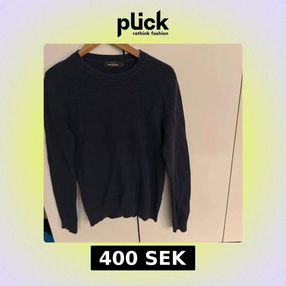 Säljer en mörkblå stickad tröja från Dressmann. Tröjan har rund halsringning och är långärmad med ribbade muddar vid ärmslut och nederkant. Perfekt för lager-på-lager och enkel att matcha med jeans eller chinos. Ny pris 699