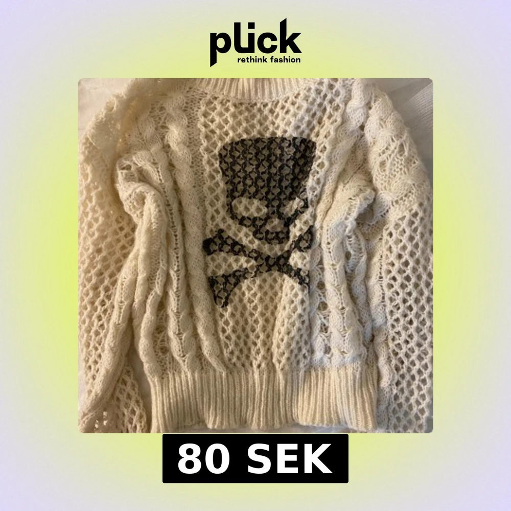 varm stickad tröja med en svart dödskalle på❣️ köpt second hand