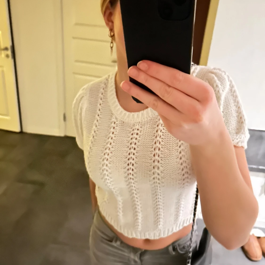Säljer en superfin vit stickad topp som är nästan helt oanvänd. Jätte mjuk och bekväm i storlek s men passar även xs❤️