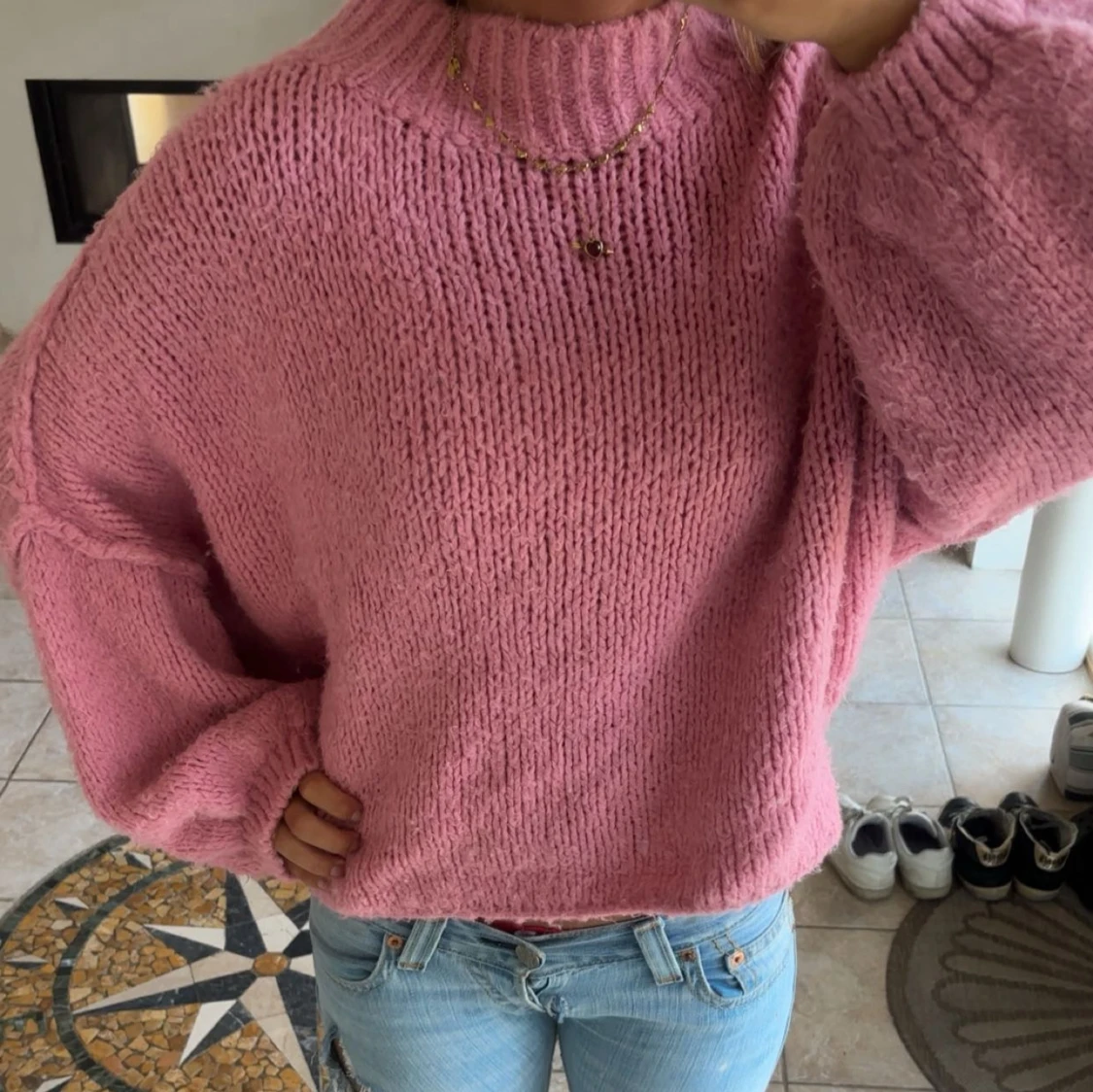 sååå snygg rosa stickad, tröjan e storlek s men väldigt oversized som e najs. skriv för fler bilder💕