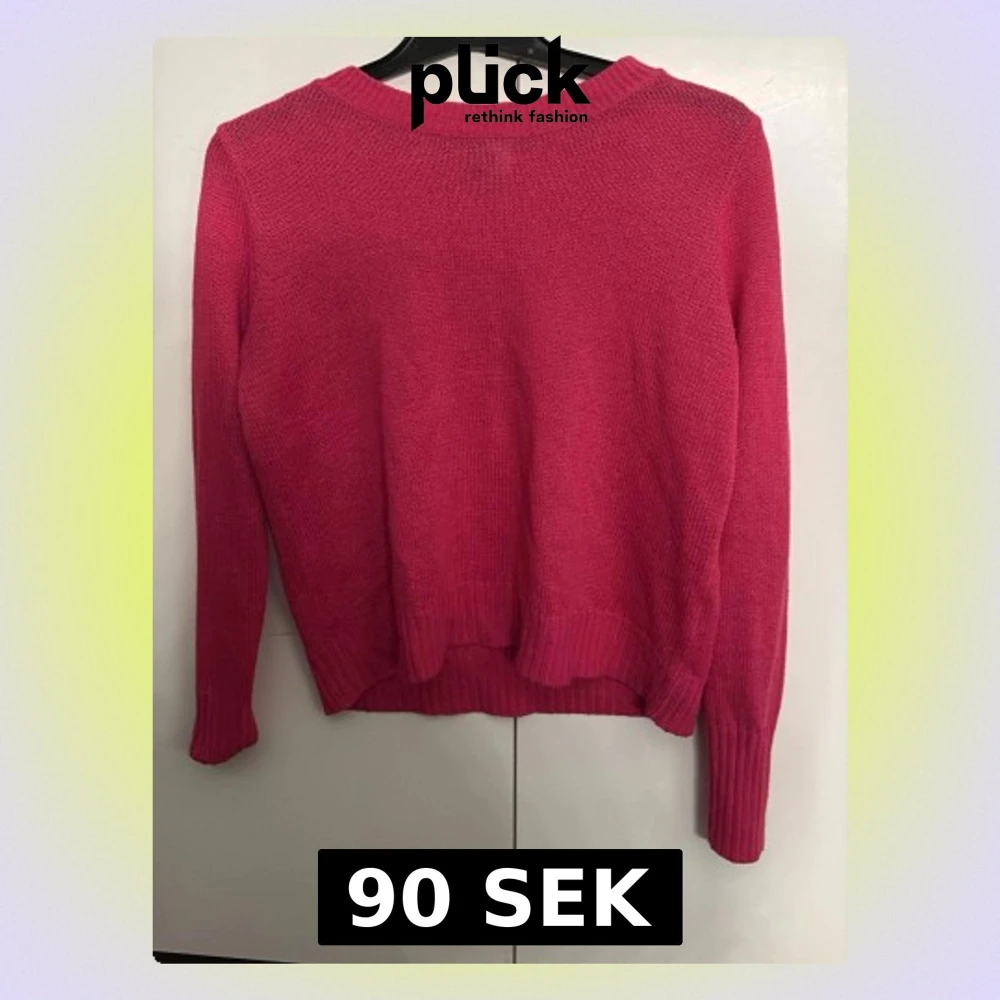 Säljer en snygg rosa stickad tröja från H&M Divided i storlek S. Tröjan har rund hals, långa ärmar och ribbade muddar vid ärmslut och nederkant. Perfekt för att ge din outfit lite färg och värme under kyliga dagar.