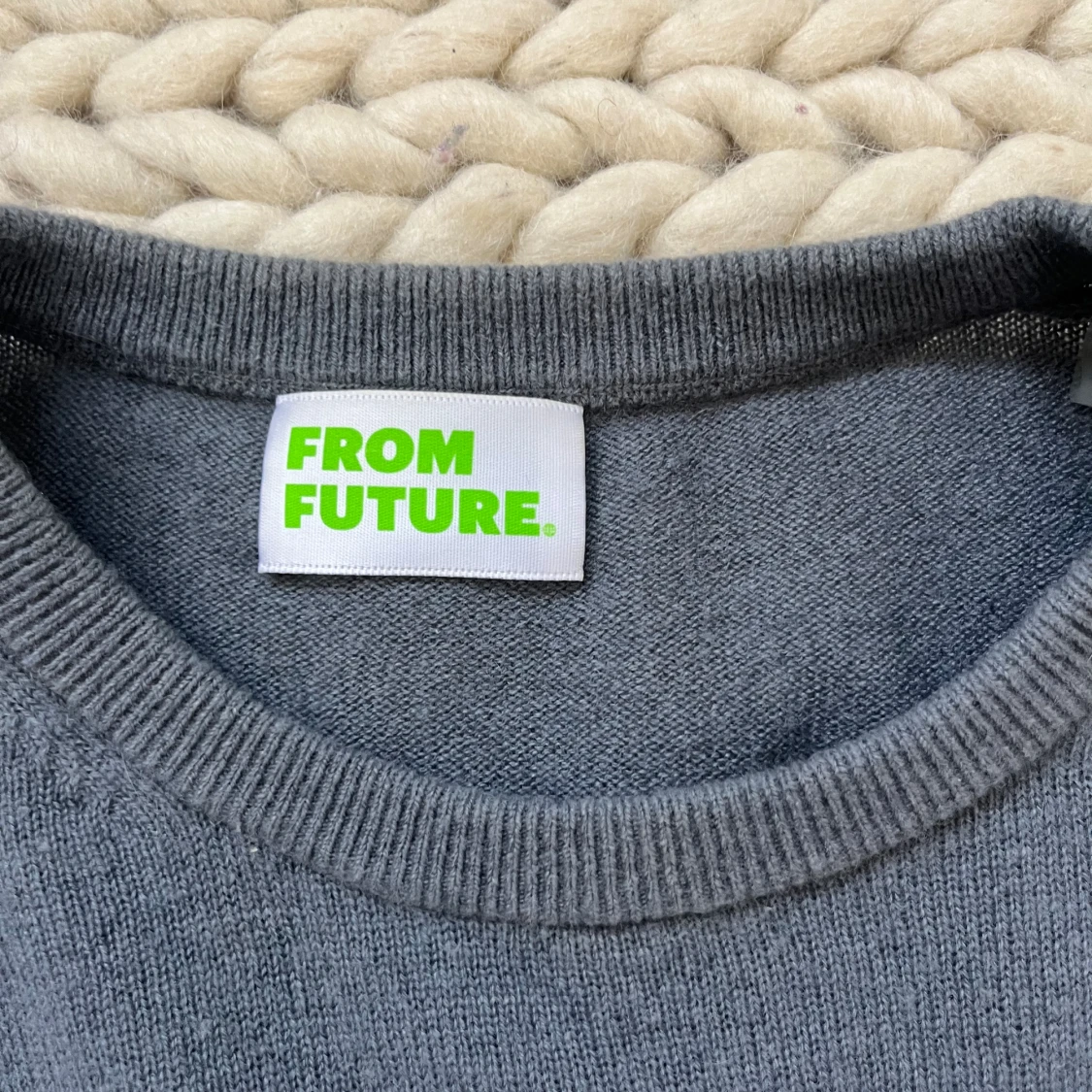 En fin from future 100% cashmere. Använd och har ett litet hål i bröstet men syns inte. Storlek S men passar M/L